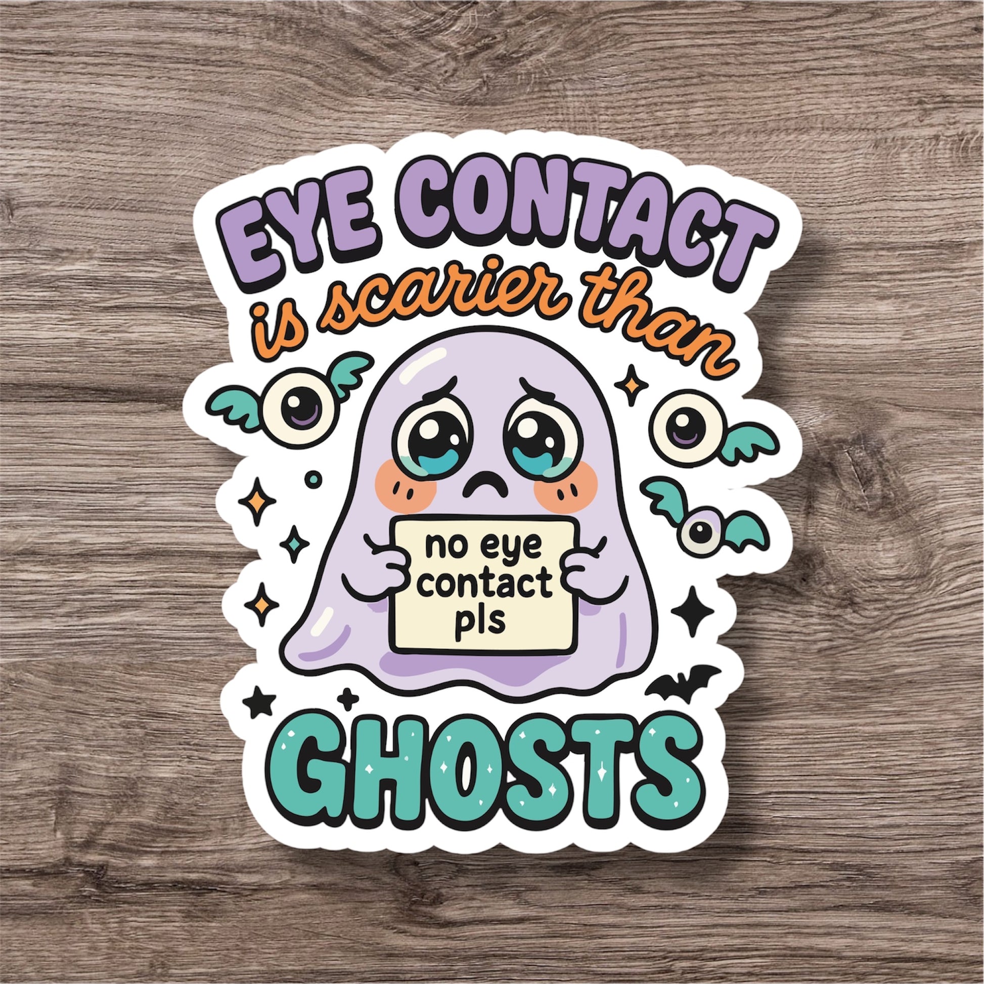 "Eye contact is scarier than ghosts” – Quirky Neurodiversity sticker for ADHD & Autistic brains